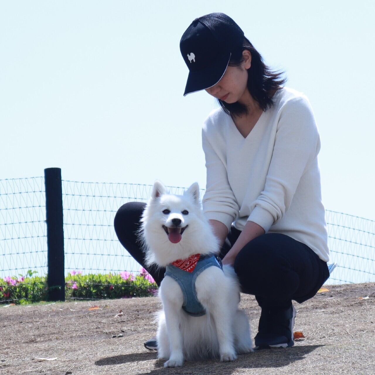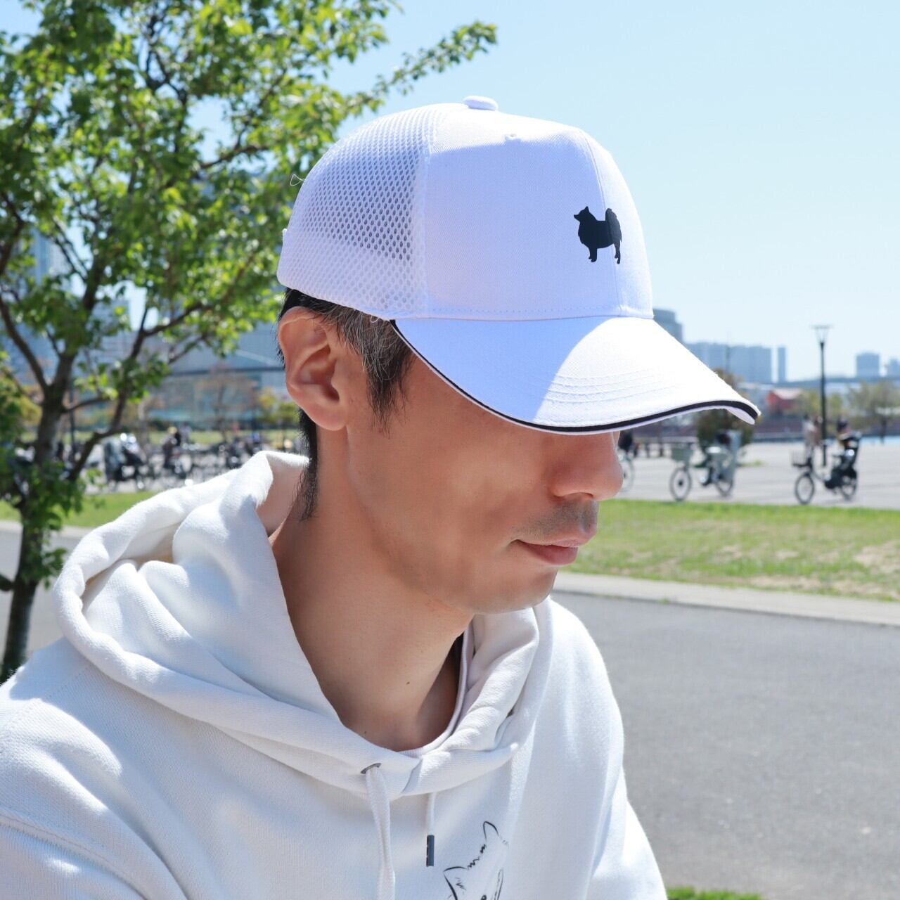 日本スピッツのシルエットを中央に配置したオリジナルのキャップです。